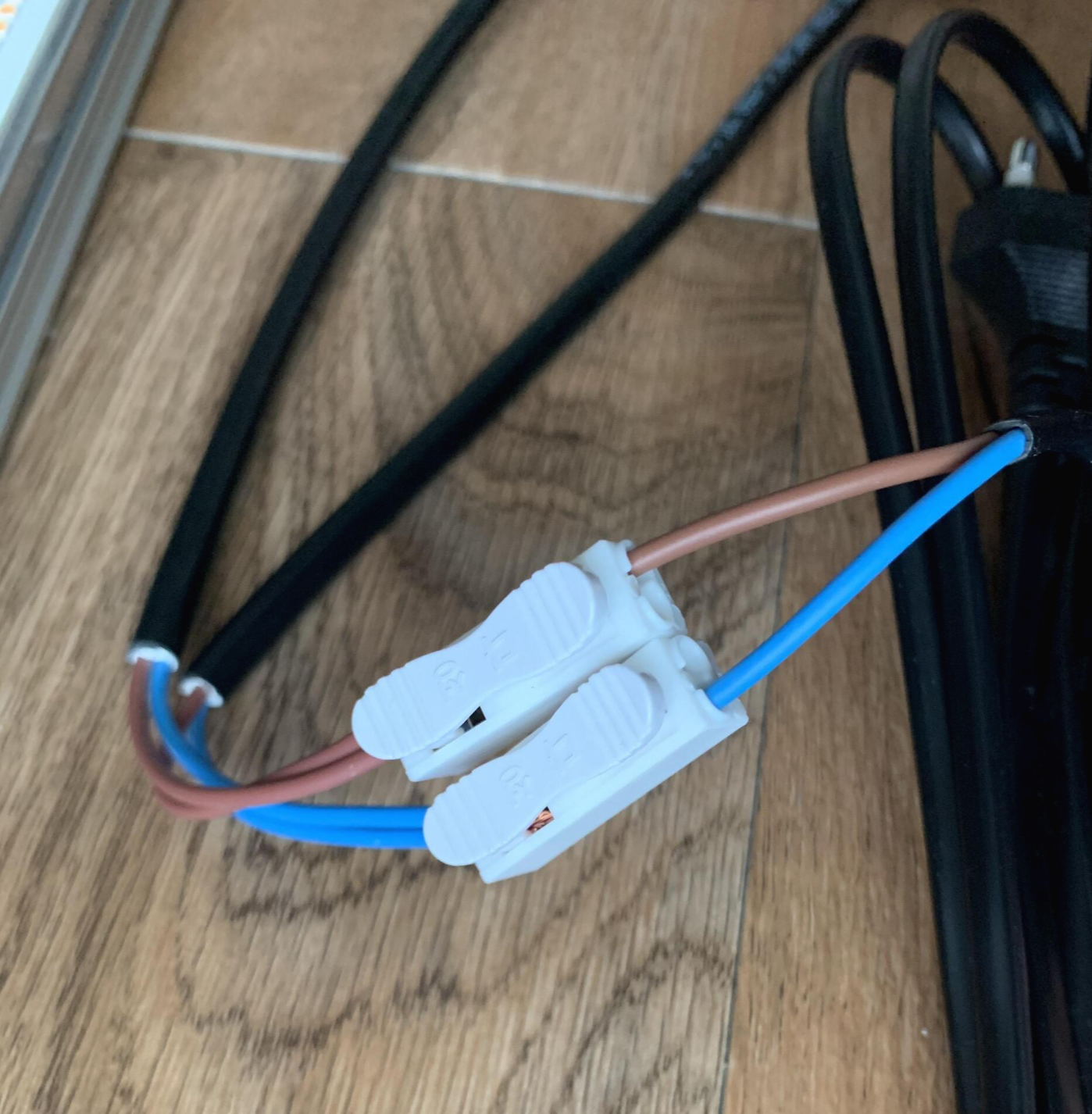 같은 색의 선을 엮어서 연결커넥터(하얀 것)에 꽂아주고 반대편에 AC전원 코드선으로 가는 같은 색의 선을 꽂아주기만 하면 끝나는 것입니다.