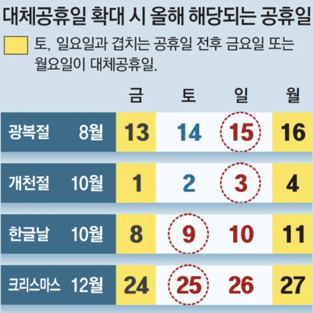 앞으로는 기다리지 않아도 대체공휴일 확대