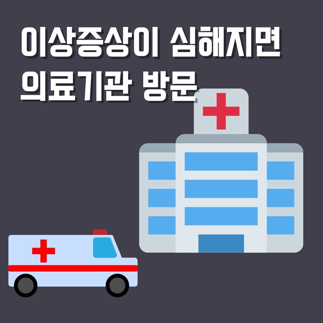 예방접종도우미 누리집을 통해 나의 증상을 확인 해 보시는 것이 좋습니다. 나의 증상이 어떤 것인지 한 번 확인 한 이후에 대응방법을 안내받을 수 있습니다.
