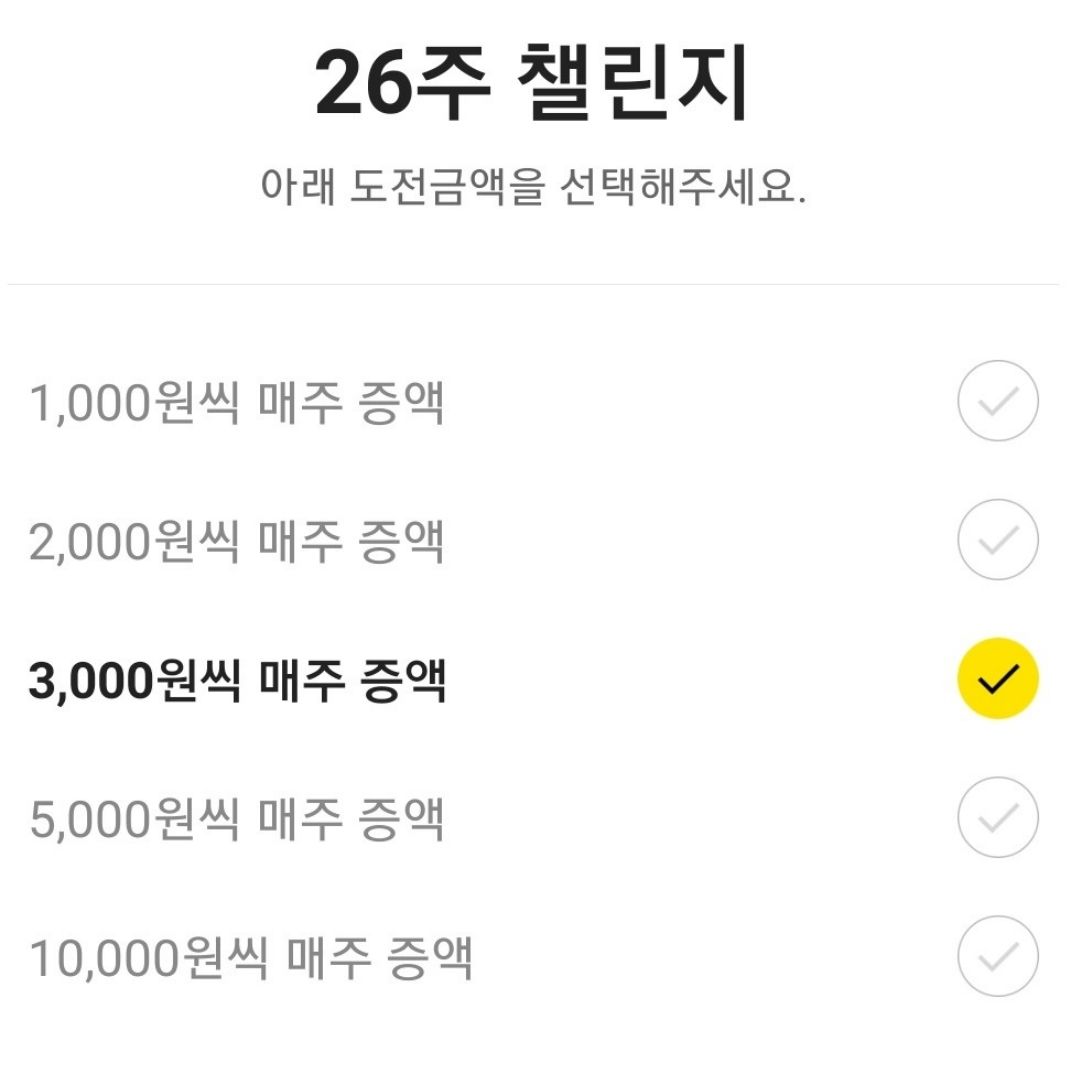 마침 오늘 8월 10일부터 23일까지 가입할 수 있다고 하여 당장 가입하게 되었습니다. 카카오뱅크 26주 적금은 1천원부터 1만원까지 총 다섯가지 적금 시작 금액을 정해 가입하게 되면 26주 동안 매주 첫 납입액만큼 늘어난 금액이 자동으로 저축되는 상품입니다.